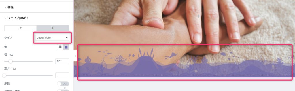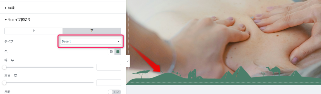 Elementor(エレメンター)にはコンテナごとに、シェイプで区切りをつけることができます。